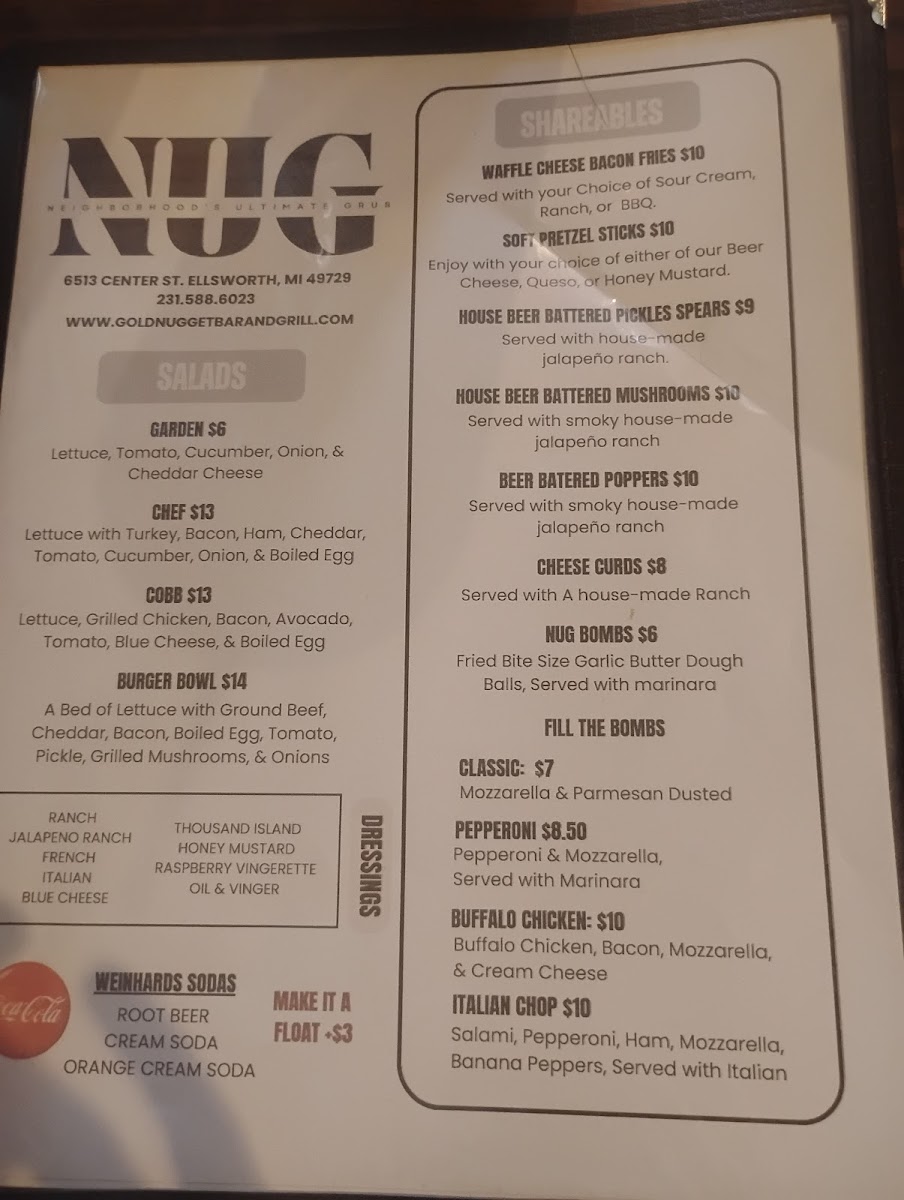 Welcome to Gold Nugget Bar & Grill, a beloved locals’ haunt nestled in the heart of Ellsworth, Michigan. Known for its friendly atmosphere and exceptional service, this bar and grill stands out as a community staple. Patrons rave about the diverse menu that features delectable offerings like savory burgers, mouthwatering garlic cheese bread, and tasty pizzas, making it a perfect spot for food lovers.